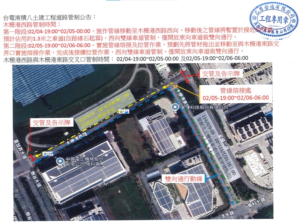 道路管制公告:轉發台電南積八工程案道路管制公告